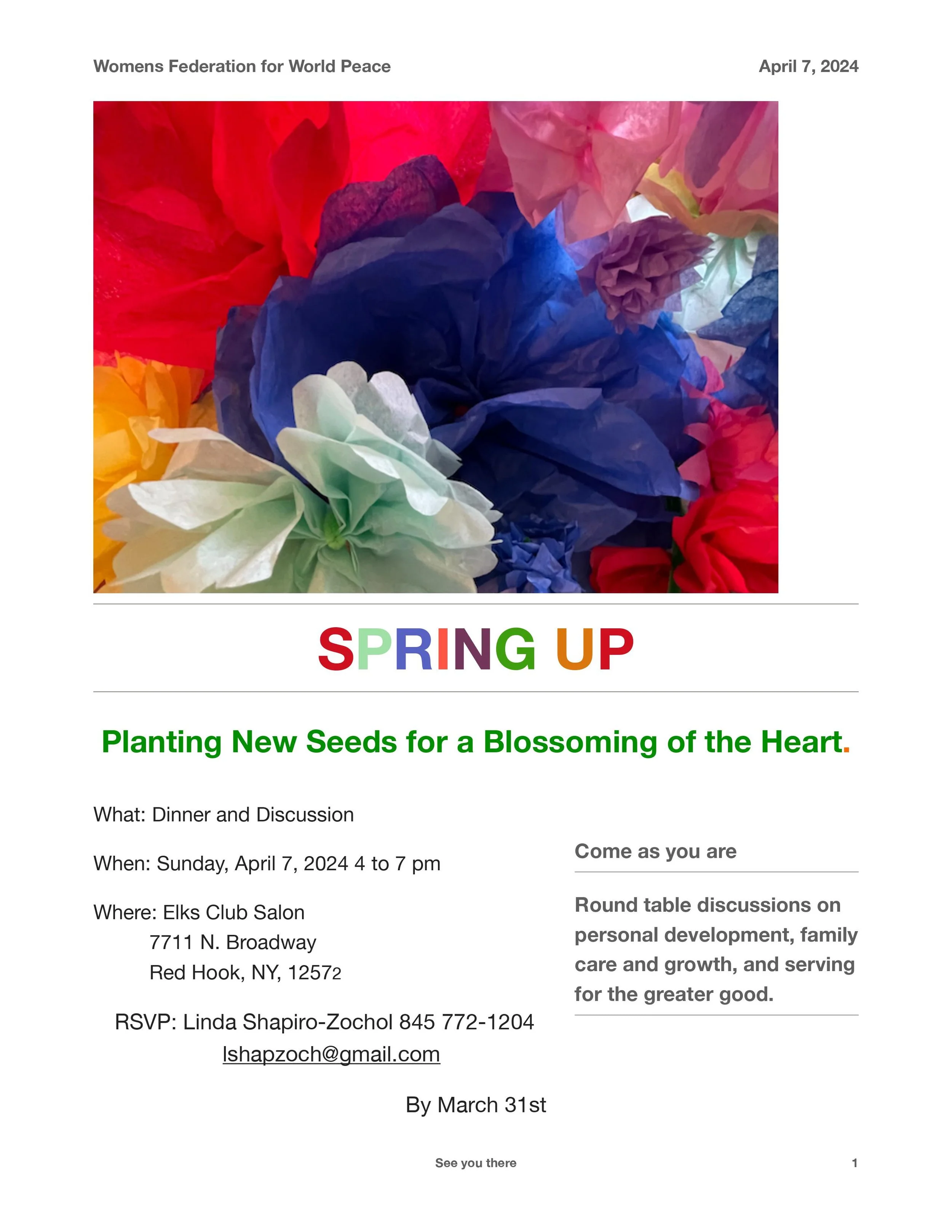RSVP: Linda Shapiro-Zochol at 845-772-1204