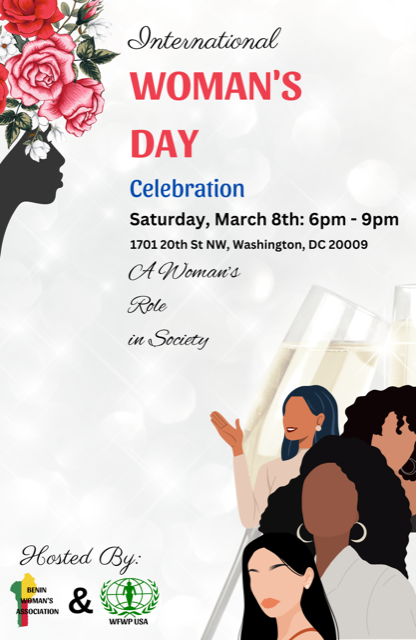 You are invited to the International Women’s Day Celebration, organized by the Women’s Federation for World Peace DC Chapter and the Benin Women’s Association.
