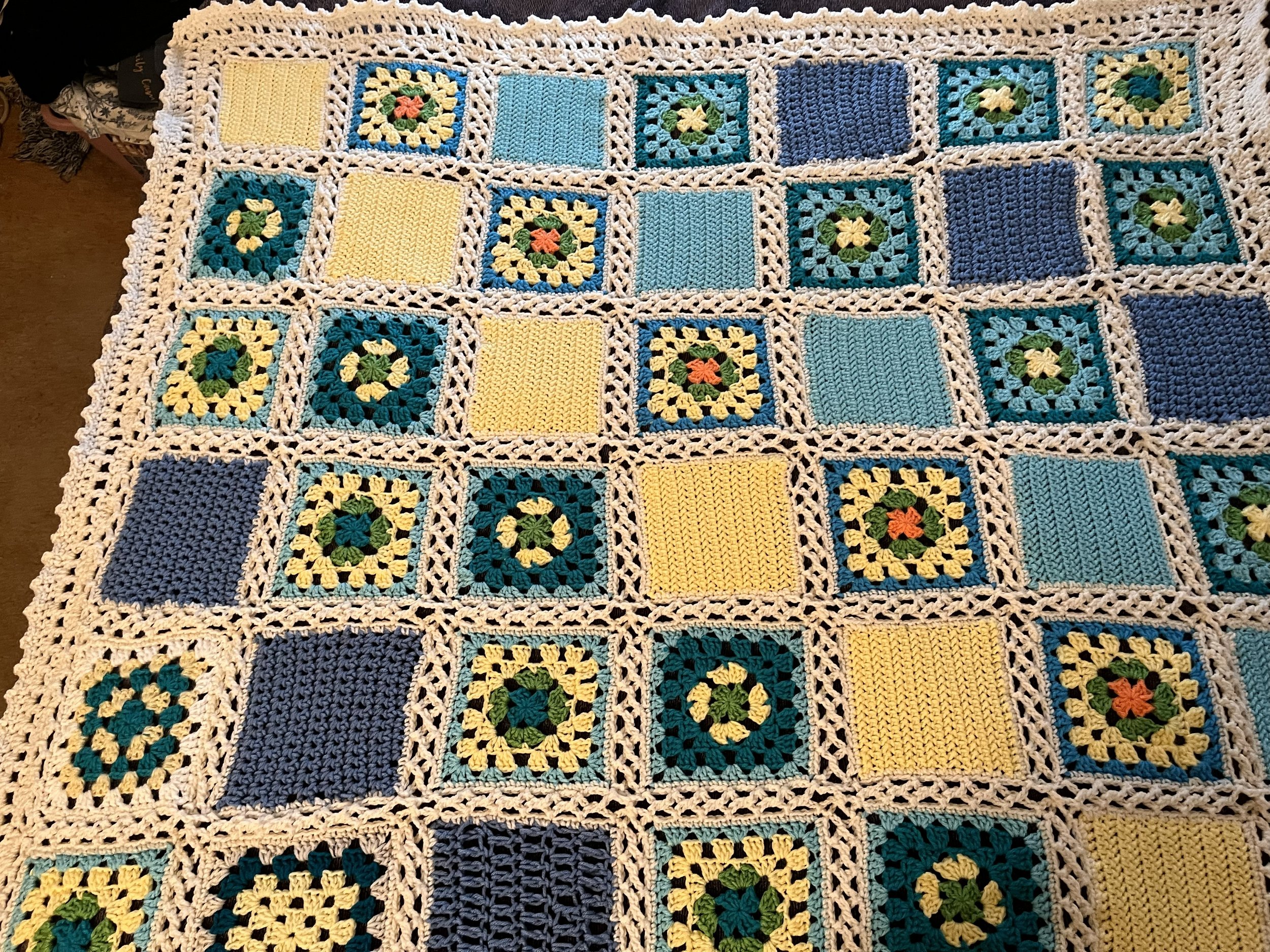 For both women, assembling a blanket is a deeply intentional act. Sally often lays the squares out on the floor, living with the arrangement for days, walking past, rearranging, waiting until it feels right. “I love the idea of the ministry,” she shares, “but I also simply enjoy crocheting.”