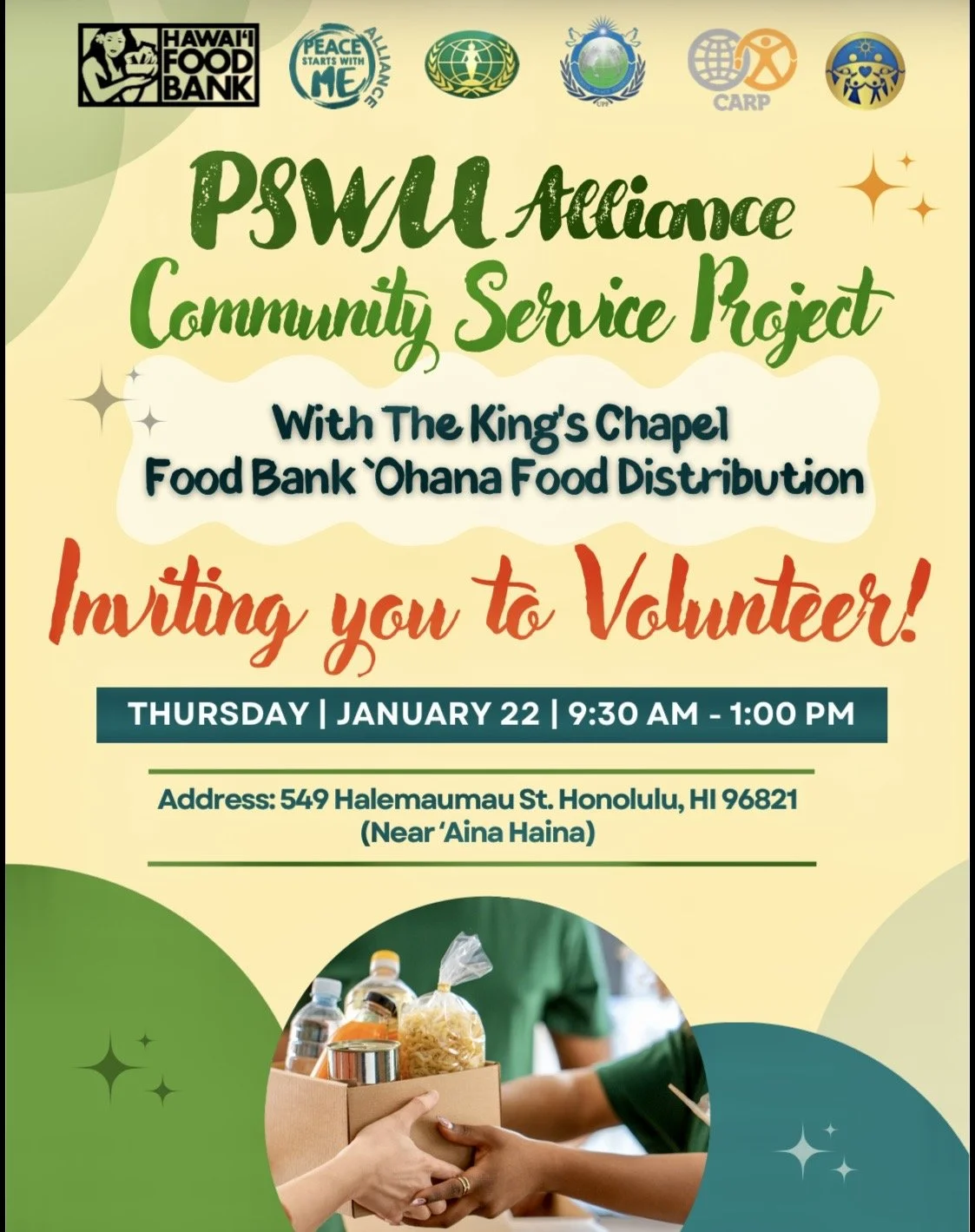Peace Starts With Me Alliance Community Service Project- King’s Chapel Hawai‘i Food Bank ‘Ohana Food Distribution