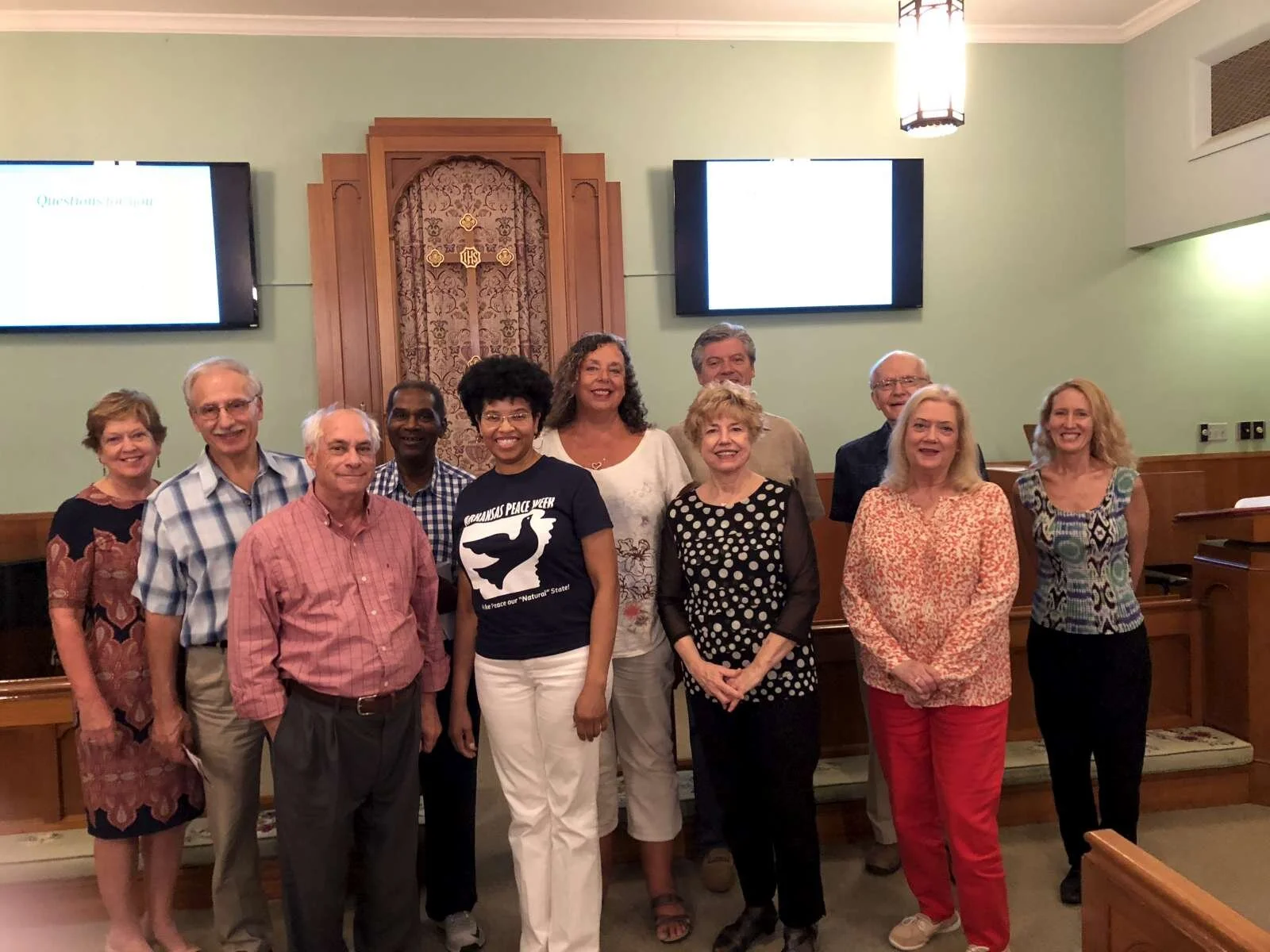 Bruce Biggins, representative from WFWP Arkansas, invited me to come and speak to local members and guests for International Peace Day on Friday, September 21st. The weather was bad that week, with threatening storms and flooding in the area. On top of which, Vice President Pence decided to come to downtown Little Rock and hold a rally for a local Republican congressman, so several roads were closed during his visit. Thus, only 12 people were able to show up on Friday night for my talk at the First United Methodist Church chapel in downtown Little Rock. However, that did not dampen our spirits. As I pointed out to Mr. Biggins, those who did come were top quality people, active in their community and well respected. I was able to get to know each of them because it wasn't a big group, and made personal connections in a way that would have otherwise been impossible. I really felt that it was a case of "quality over quantity."