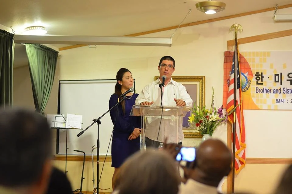 In Denver, June 15, Mr. and Mrs. Lee's daughter, Hwa Jeong and her husband Benjamin Martinez, hosted an American-Korean Brotherhood and Sisterhood event. Sixty-five participants, including Mr. and Mrs. Lee's two grandchildren, attended the event. Activities included the recognition of the Korean and the American flags, the signing of a brother/sisterhood declaration, a gift exchange; Japanese congratulatory songs; group photos; and a Korean taco dinner accompanied by entertainment.