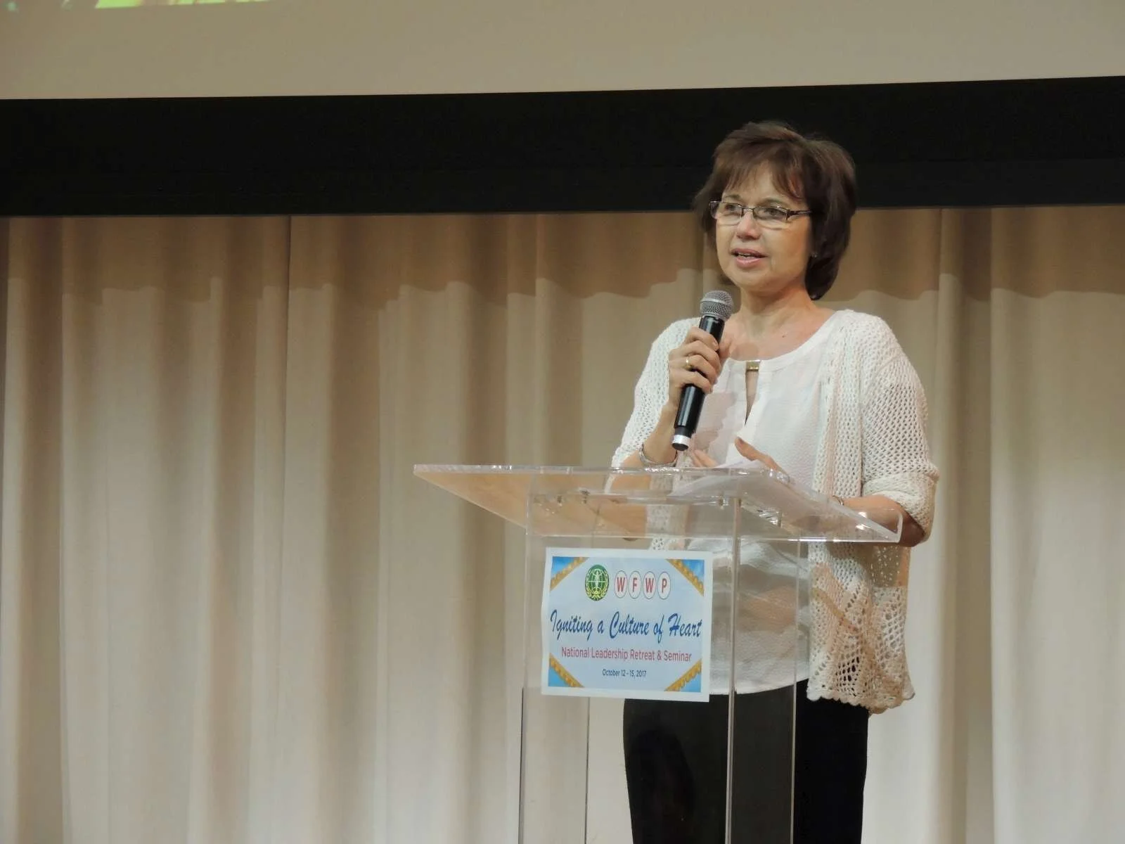 Vice President Katarina Connery, who served as an excellent emcee throughout the full program, called President Angelika Selle to the stage to welcome all present. President Selle began by asking everyone to stand and honor those who passed in the massacre and their families with a moment of silence and followed by her heartfelt prayer. She then gave a brief overview of the internal and external purpose of this year’s retreat and seminar all revolving around this year’s theme: “Igniting a Culture of Heart.”