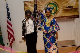 The program began with libations by Mrs. Lorraine Jamison. In African culture, a libation is a ritual pouring of a liquid onto soil or the earth to show respect for the ancestors and calling them to attend the event. Rev. Alain Tamelessio, president of the Africa New Hope Association, gave welcoming remarks, followed by an opening statement by Rev. Denneze Nelson, regional chairwoman of WFWP District 3. Mrs. Nelson introduced WFWP and its Founders, and explained how men and women were created in the image and likeness of God, with His dual characteristics. "Unfortunately," she said, "one of the greatest lies ever told and lived is that we are worthless because we are women and because we are women of some color or origin." Mrs. Nelson invited all women to come together in sisterhood to see each other through the eyes of God and to strive to reeducate themselves to a higher level of conscience.