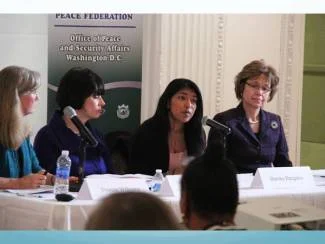Shortly after the WFWP 21st Anniversary Assembly, Mrs. Angelika Selle, President of the Women's Federation for World Peace, USA was invited to speak at a Peace and Securities Forum on the topic "Human Trafficking and Poverty, a Critical Connection: Creating a Culture Free of Slavery" on November 6th, in Washington, DC. The forum was co-hosted by the Universal Peace Federation Office of Peace and Security Affairs-Washington, D.C., the Women's Federation for World Peace-USA, Seraphim GLOBAL, and Trafficking in America Task Force. She spoke briefly about what they are doing to strengthen families in an effort to eradicate human trafficking.